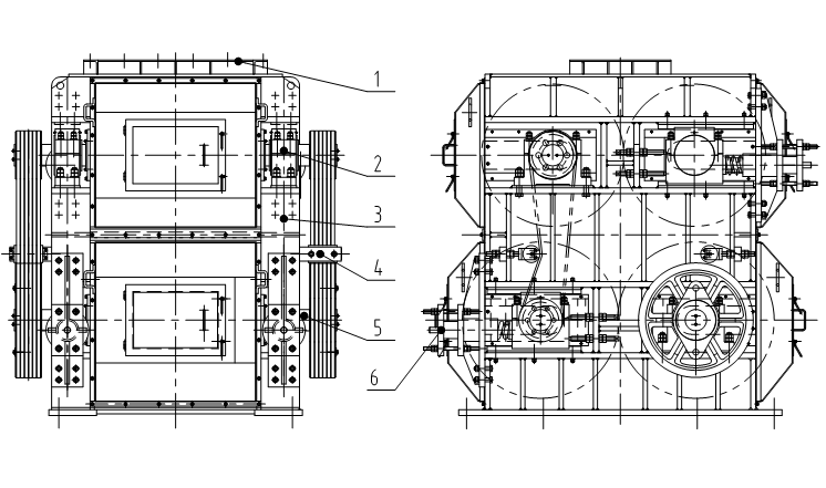 齒輥式破碎機適用于煤礦或選煤廠破碎原煤,也可用于破碎其它中低硬脆性物料。齒輥間距液壓調(diào)整,齒輥軸承集中潤滑。齒形優(yōu)化設(shè)計,拉剪力選擇破碎,高效低耗,出粒均勻。該機還具有體積小,噪聲低,結(jié)構(gòu)簡單,維修方便的優(yōu)點。 齒輥式破碎機可分為雙齒輥、三齒輥及四齒輥破碎機。 一、2PGC雙齒輥破碎機 雙齒輥破碎機具有體積小,破碎比大(5-8),噪聲低,結(jié)構(gòu)簡單,維修方便的優(yōu)點,生產(chǎn)率高(比我國現(xiàn)在2PGC齒輥式破碎機生產(chǎn)率高1-2倍),被破碎物料粒度均勻,過粉碎率低,維修方便,過載保護靈敏,安全可靠等特點。本機主要采用特殊耐磨齒輥相對高速旋轉(zhuǎn)對物料進行劈裂破碎形成了高生產(chǎn)率的機理。雙齒輥通過萬向聯(lián)軸器傳動,輥間隙可以通過墊片調(diào)節(jié).該機主要由固定輥,活動輥,減速器,萬向聯(lián)軸器部分組成,全部采用滑動軸承,傳動平穩(wěn),使用維修非常方便。